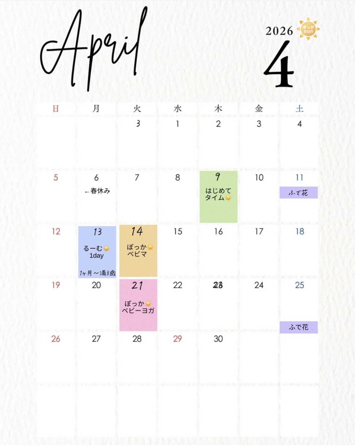 4月のケジュールをアップしました