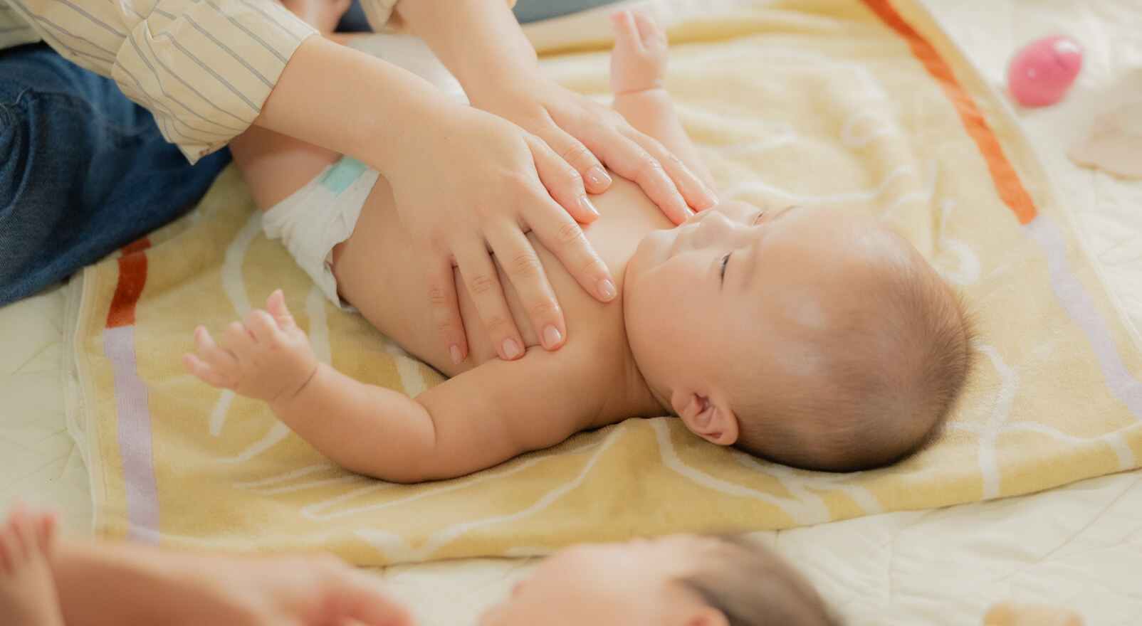 パッチテストの後、赤ちゃんの様子に合わせてマッサージを進めます。